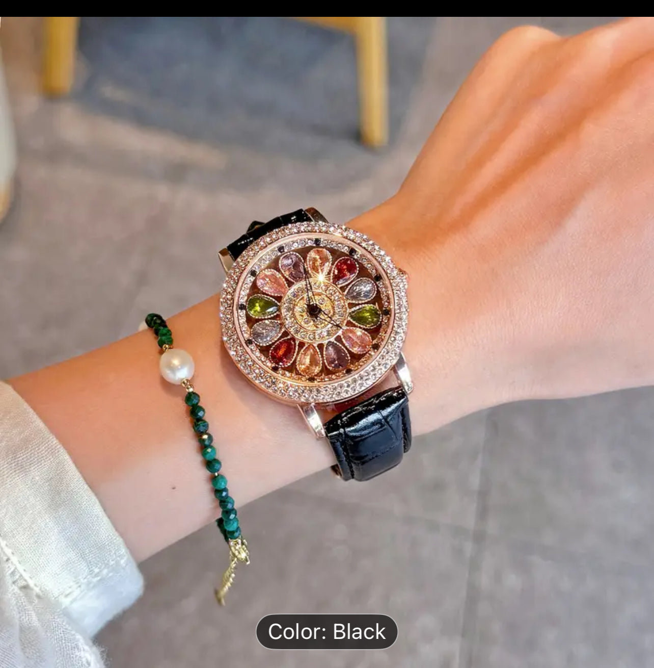 1pc Women's Fashionable Quartz Watch - Round Case Rhinestone Inlay, Durable Calfskin Leather Strap, Japanese-Quartz Movement | Water-Resistant Design | Perfect for Dating Gift & Daily Wear
