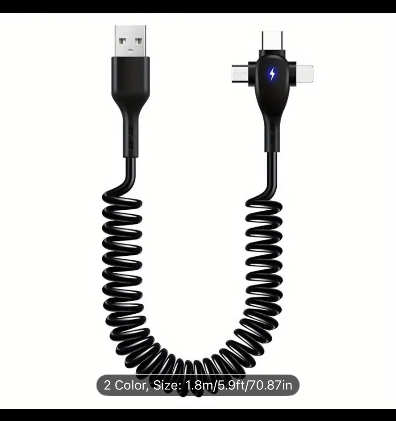 66W Super Fast Charging T Type Spring Cable for Apple TypeC Android Car 3in 1 Fast Charger