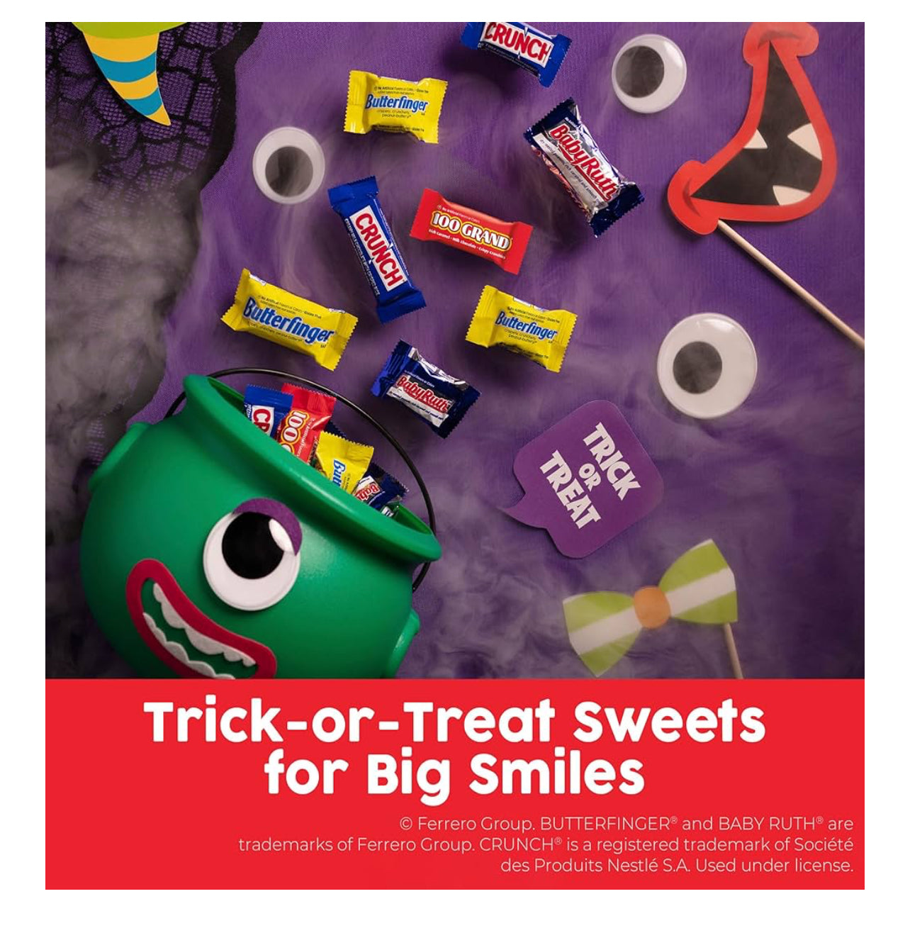 Butterfinger, CRUNCH, Baby Ruth, 100 Grand Mini and Fun Size Assorted Candy Bars, 80 counts