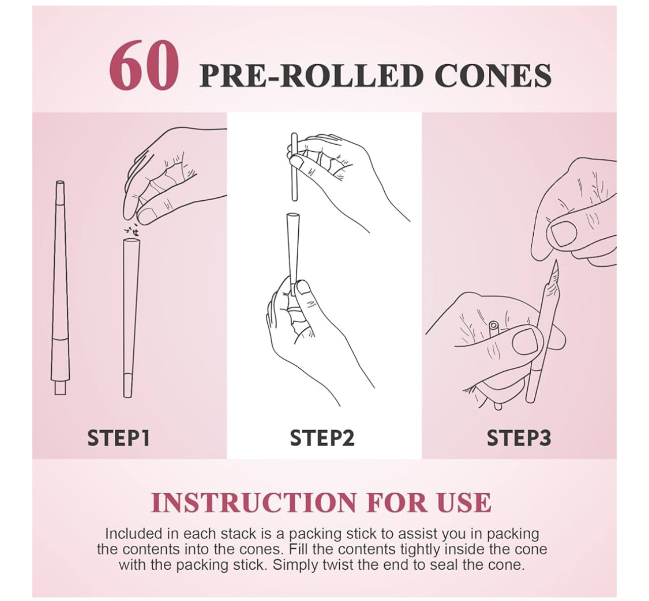 TISFA Pink Pre rolled Cones 60 Pack Rolling Papers King Size Rolling